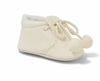 Adorable patent baby booties with Pom Pom ties