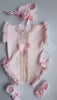 The Giada Romper is a sophisticated summer essential in soft blush pink, crafted from lightweight cotton for warm-weather comfort. Delicate ruffled edges add refined detail to this charming piece, while the included dainty hair wrap completes the look. Perfect for special occasions or everyday elegance, this romper comes with coordinating booties in sizes up to 12 months, making it an effortless choice for your little one's wardrobe.